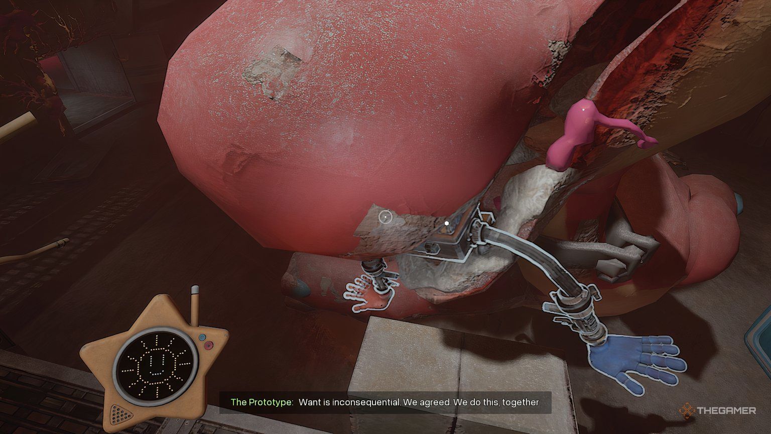 Далее он попросит вас следовать за ним, что приведёт вас к короткой сцене, где Прототип будет преследовать вас. Как только он исчезнет и Гиблет скажет, что безопасно, вы продолжите следовать за ним к своему укрытию.