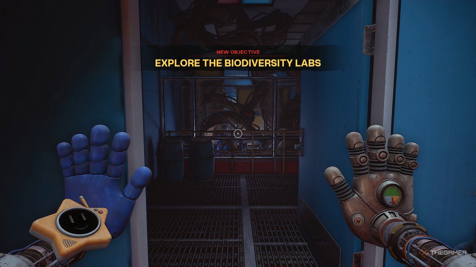 Отправляйтесь в лабораторию биоразнообразия и спуститесь по лестнице, чтобы найти очередную записку. После того, как вы её получите, вам напомнят о вашей Руке Давления. На этот раз вы можете использовать её, чтобы взрывать странные, мясистые сгустки, которые вы замечали по всей территории.