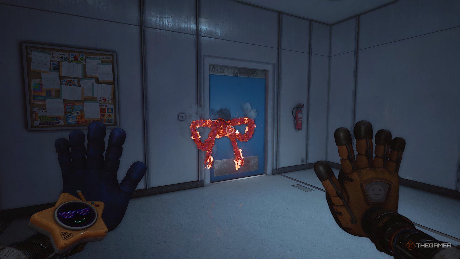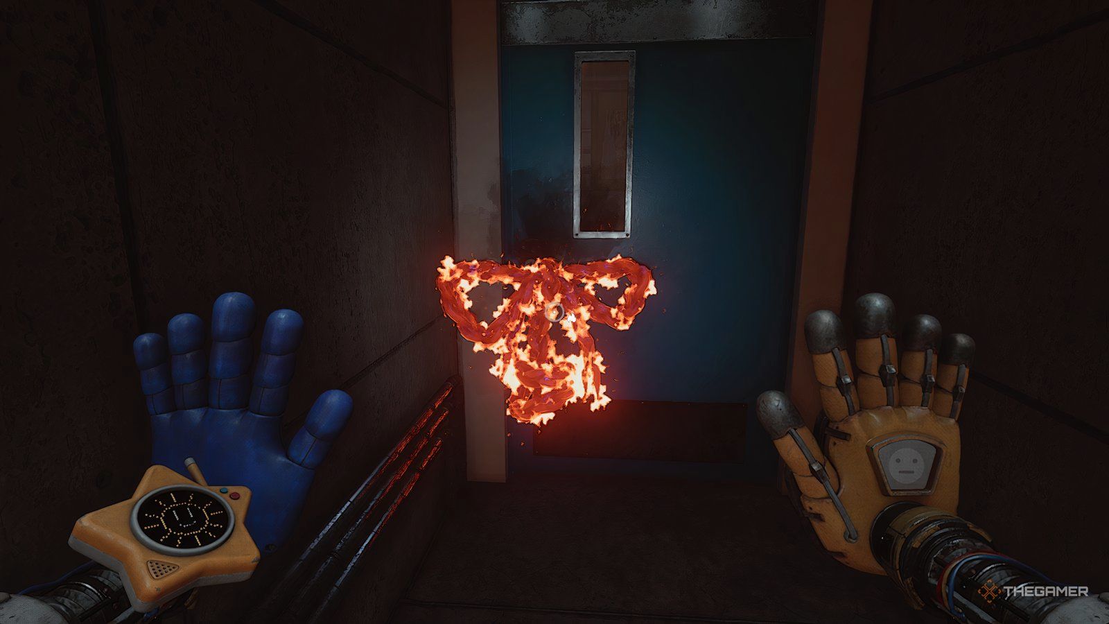 Теперь, когда у вас есть Grabpack, ваша цель — сбежать, и вы можете снова свободно двигать руками. Сначала вернитесь в коридор, в который вы изначально вошли, и пройдите через любую из дверей там.