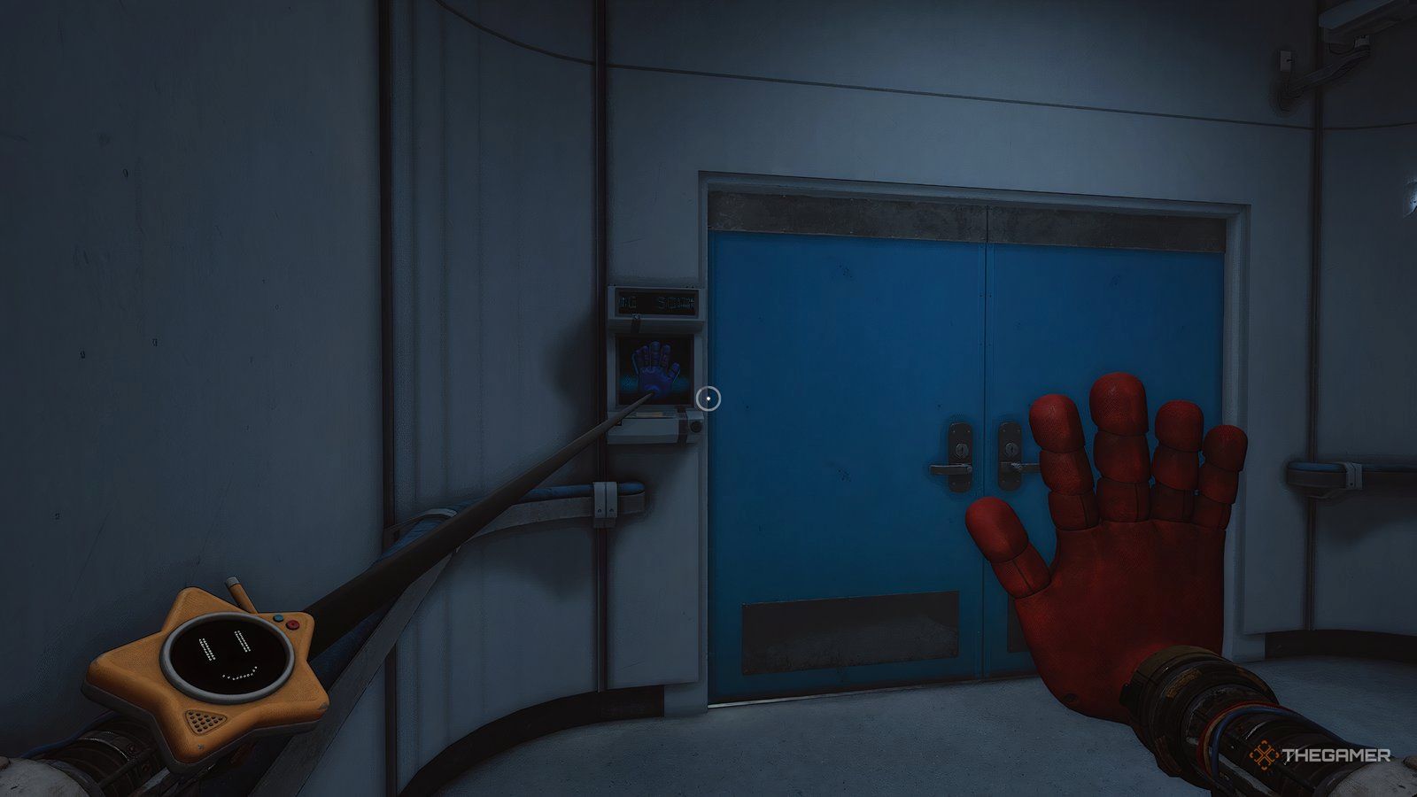 Не позволяйте Хагги Вагги прикоснуться к вам, пока не увидите другой сканер руки, появляющийся в дверном проеме. Если вы попытаетесь его отсканировать, он выхватит Grabpack из вашей руки. Затем он исчезнет, и лифт рухнет вниз, что приведет к черному экрану.