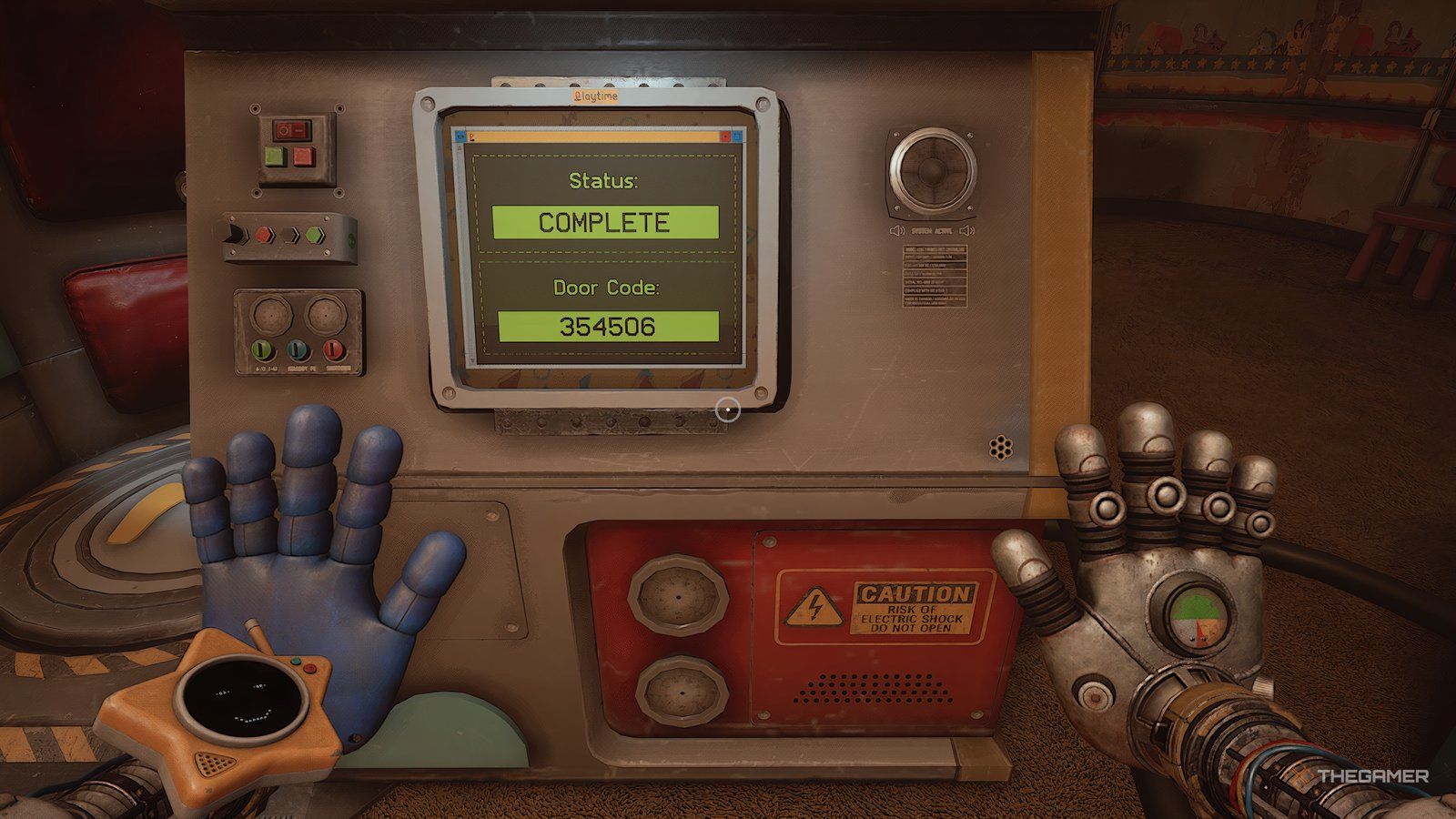 Гиблет проведёт вас к компьютеру, но если вы заблудитесь, он находится на дальней левой стене. Как только вы его найдёте, используйте клавиатуру, чтобы включить его. Если он запросит обходной код, потяните за рычаги по обе стороны компьютера. Это запустит короткую кат-сцену, и тогда вы завершите Poppy Playtime Chapter 5!