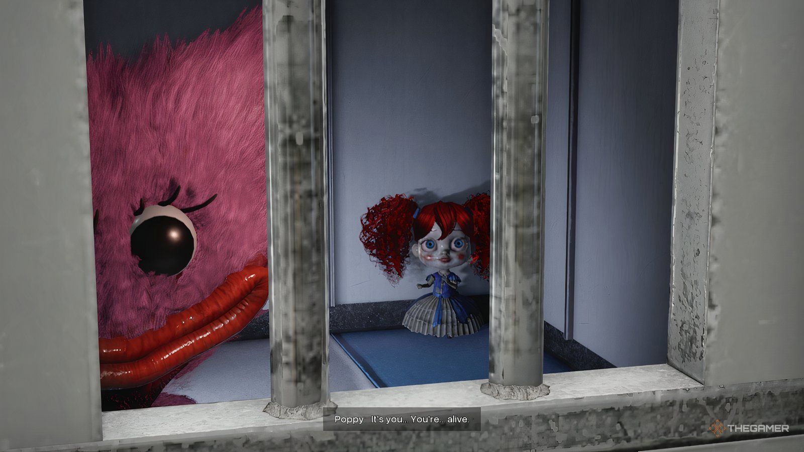 Лили проведёт вас к своему дому и попросит достать булочки из подвальной печи. Пройдите через дверь рядом с ней, поверните налево в коридоре, чтобы спуститься вниз, и вы обнаружите Поппи и Кисси, запертых в камере. Поппи попросит вас помочь ей сбежать, вероятно, найдя рычаг. Однако лента на дверце камеры намекает, что вам на самом деле нужно будет найти пожарный щит, чтобы её открыть.