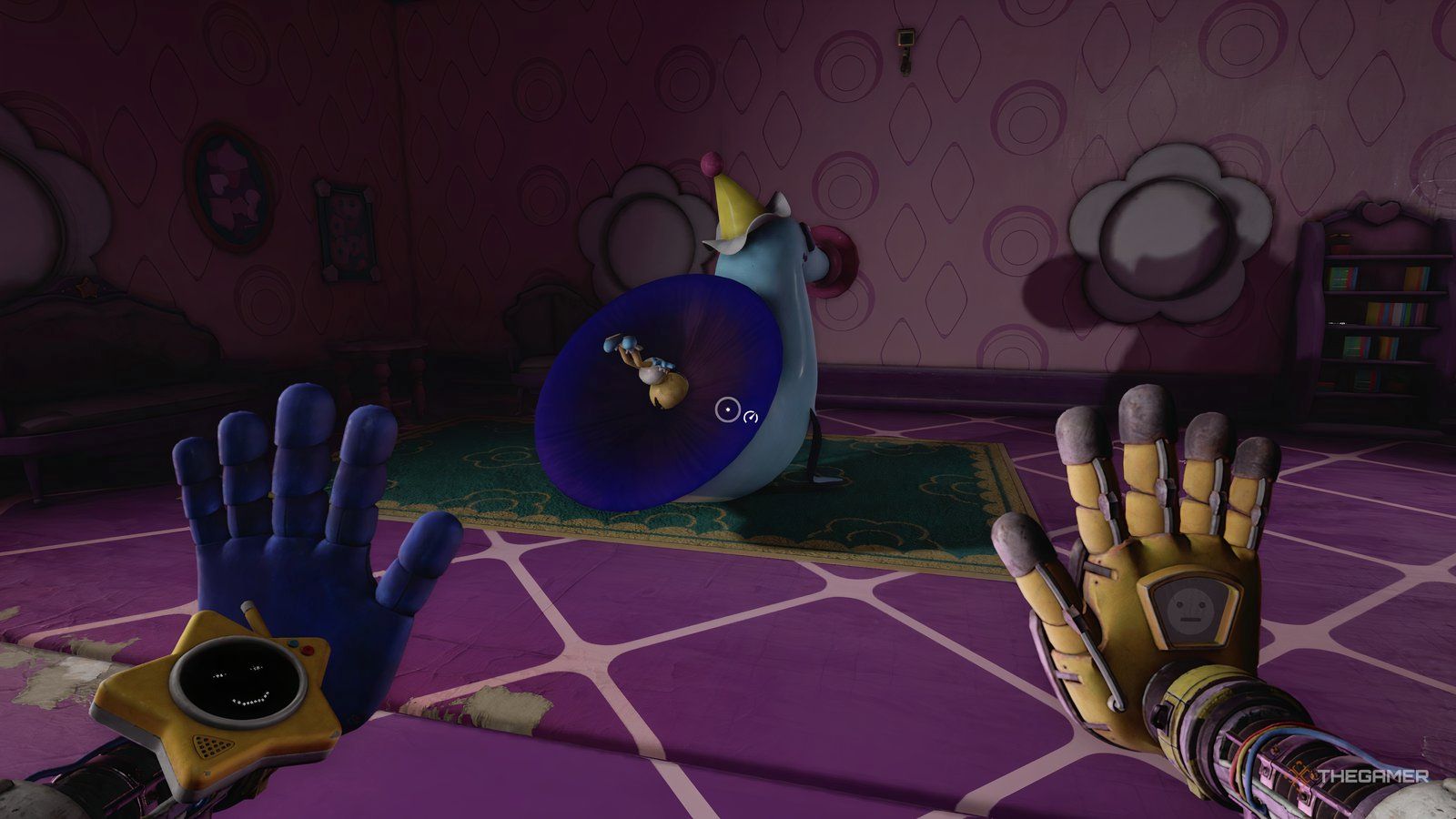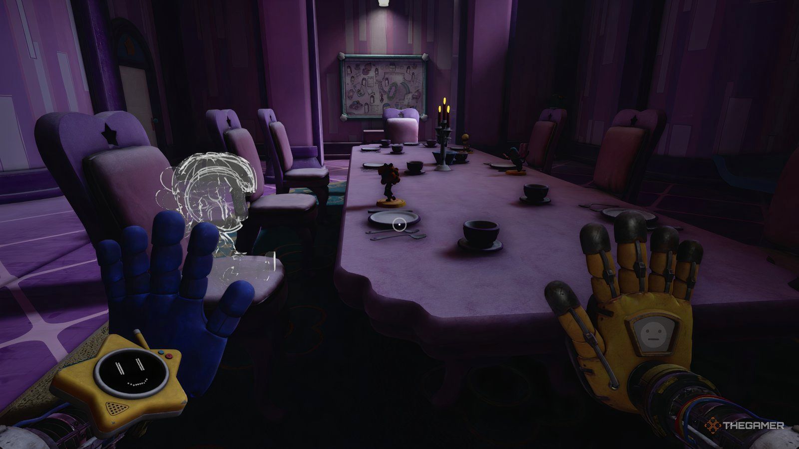 Вы можете найти первую батарейку, проползя в вентиляционное отверстие, спрятанное в настенной полке. Вторая батарейка находится внутри багажника игрушечной машинки. Как только у вас будут обе батарейки, включите свою руку и используйте её на коробке, подключенной к машинке. Это опустит окна, позволяя вам схватить игрушку и принести её на чаепитие.