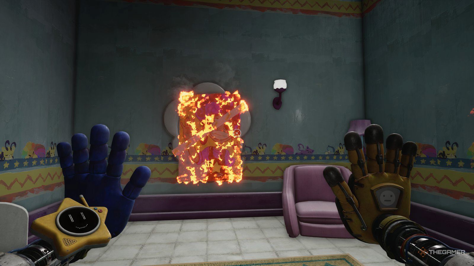 Вы найдёте постер Лилли на стене, который можно уничтожить. Чтобы это сделать, направляйтесь в главную область и взаимодействуйте с панелью Огня возле лестницы – той, которую вы видели раньше.