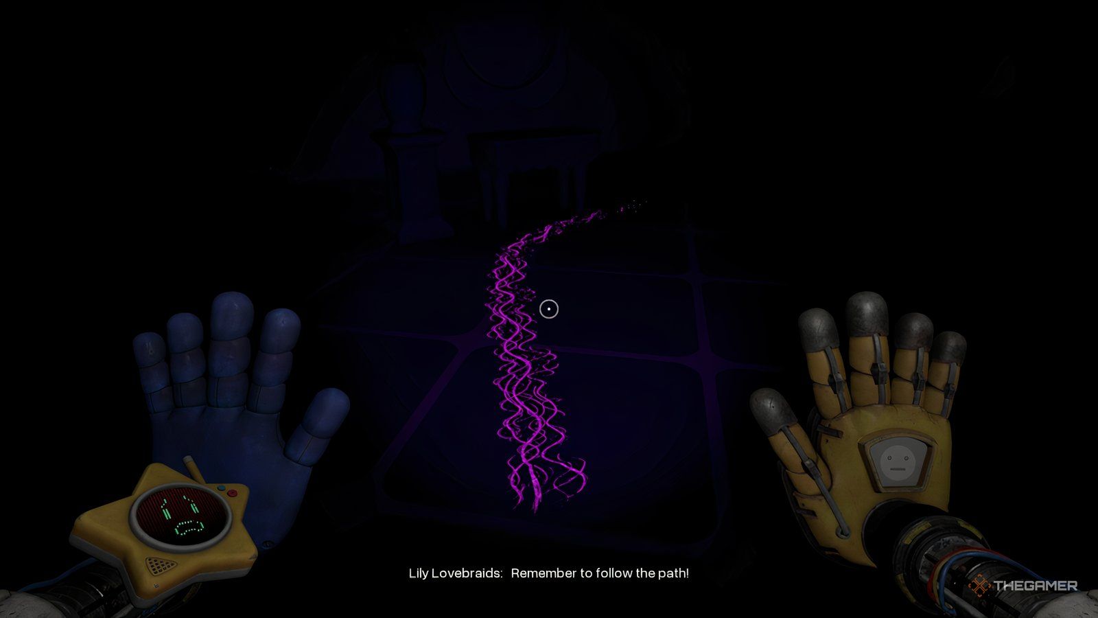 Суть в том, чтобы следовать за светящимся фиолетовым следом, который вы видите в чёрном свете. Оставайтесь на пути и двигайтесь только тогда, когда вам положено, иначе она решит, что вы жульничаете, и вам придётся начать заново.
