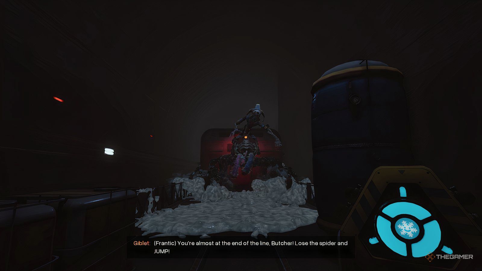 После того, как вам кажется, что вы сбежали с поезда, начнется кат-сцена, в которой Prototype бросит вас в контейнер, наполненный странным веществом, которое вы замечали. Как только кат-сцена закончится, Giblet разбудит вас и проведет к резервной копии, которую вы искали.