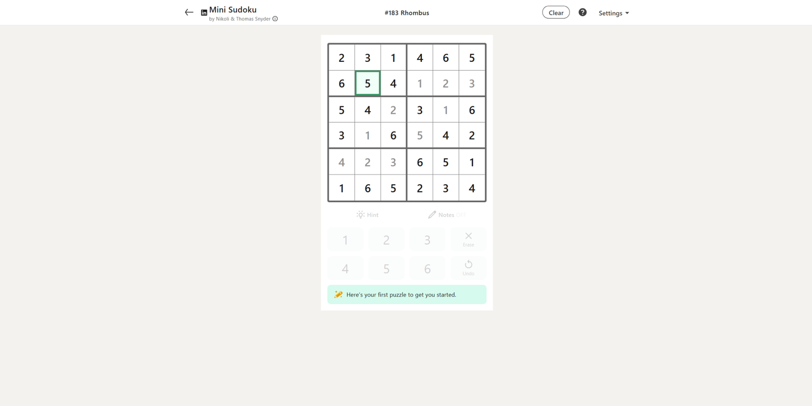 Решение LinkedIn Mini Sudoku за 10 февраля 2026 года (#183)