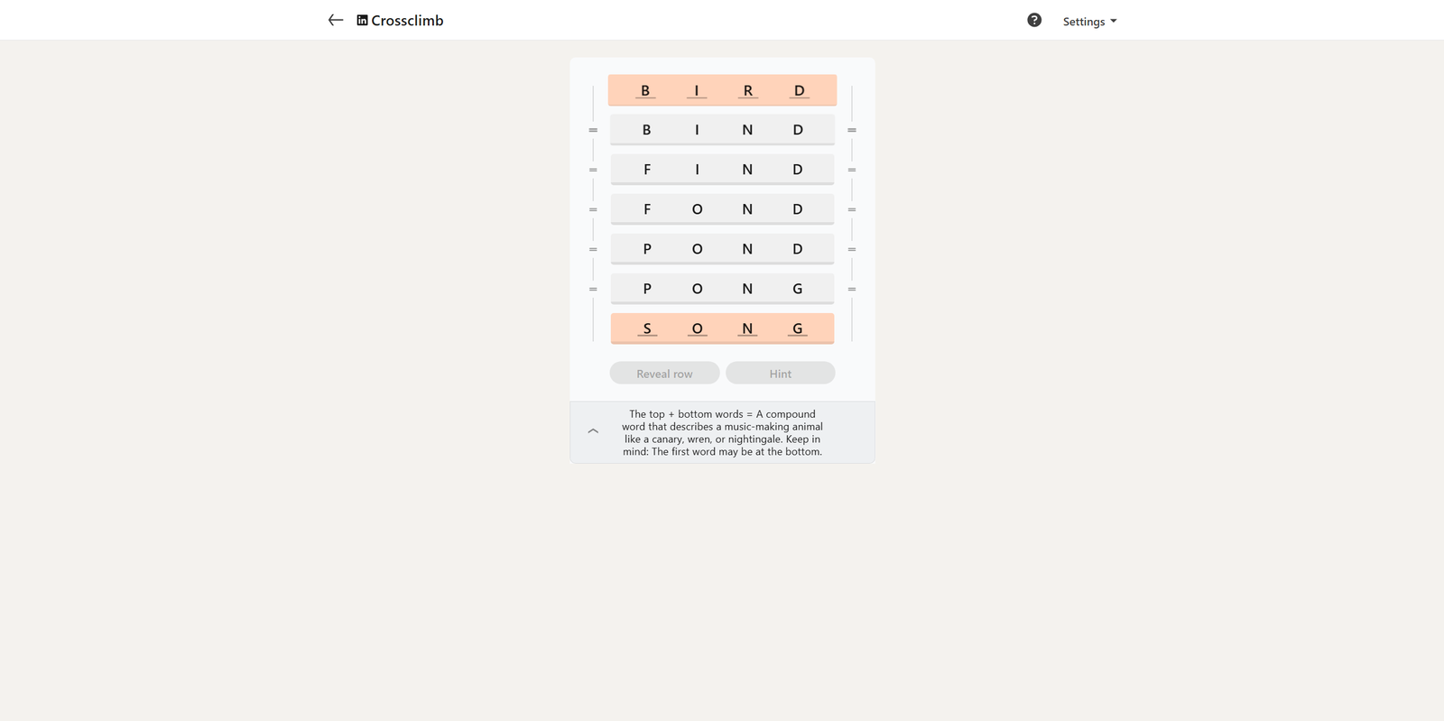 Вот решение для сегодняшнего LinkedIn Crossclimb:
