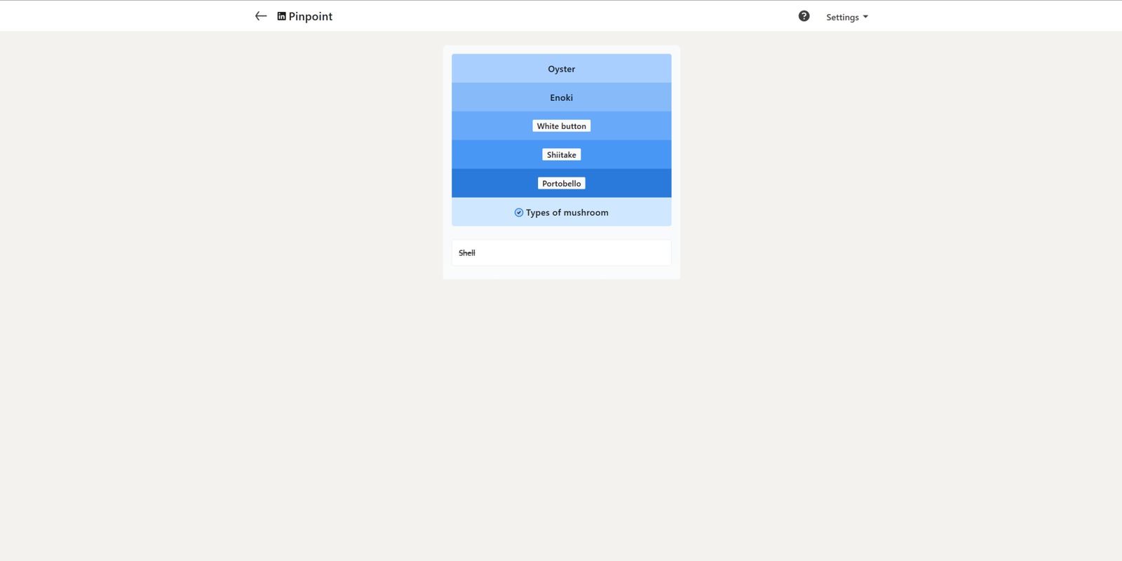 Третья подсказка — «Белая пуговица», и решение довольно очевидно. Четвертая подсказка — «Шитаке», что делает ответ вполне ясным. Наконец, подсказка «Портабелло» указывает на ответ: виды грибов.