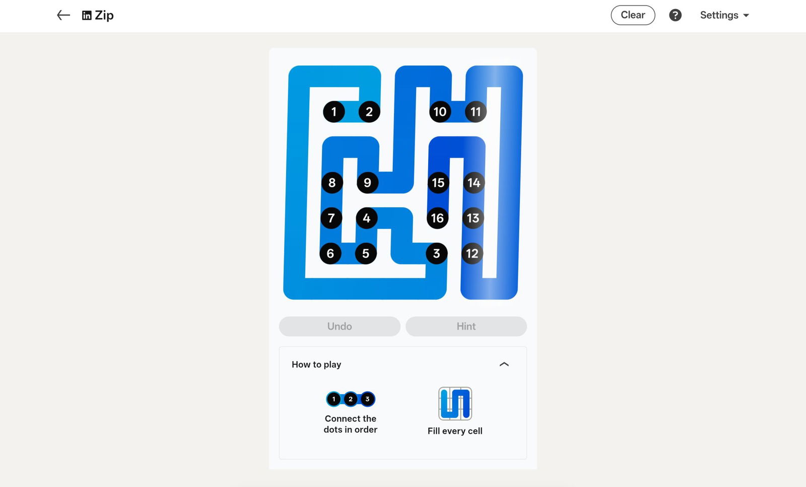 LinkedIn Zip Solution для 21 января 2026 года (#310)