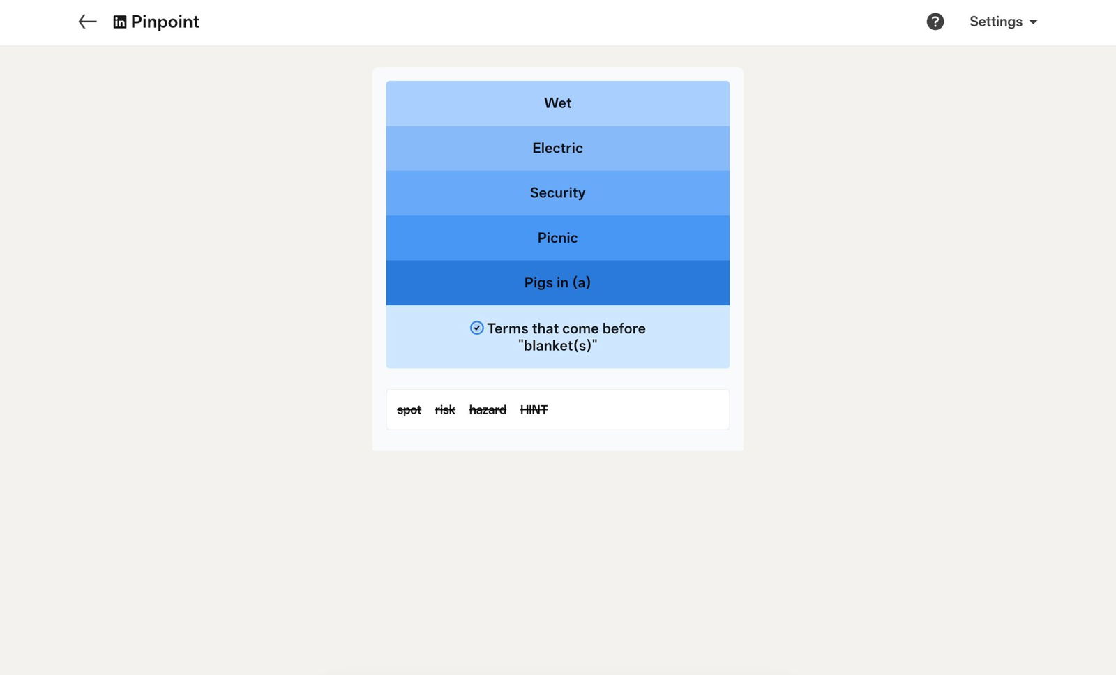 Сегодняшняя головоломка Pinpoint немного странная, хотя и не слишком сложная. Подсказки оказываются сложными – ‘Wet’ не приводит к очевидному ответу, ‘Electric’ заводит игроков по ложному пути, и даже со словом ‘Security’ в качестве подсказки решение остаётся неясным.