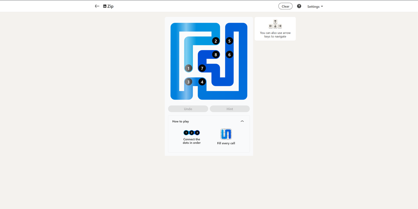 LinkedIn Zip Solution для 27 января 2026 года (#316)