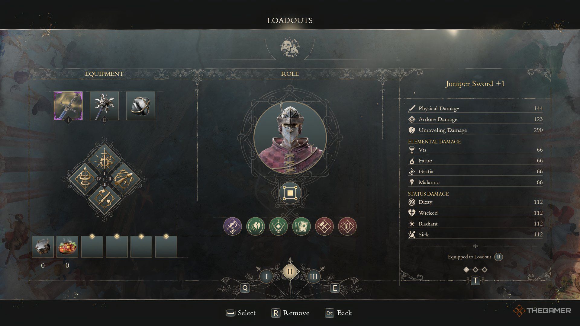 Персонажу, известному как Безмасковый, разрешено носить с собой максимум три конфигурации снаряжения. Их можно менять во время боя или исследования, поэтому полезно иметь несколько вариантов сборки для различных сценариев. Вы можете настроить свою экипировку либо в своем инвентаре, либо отдохнув в Reality Knots.