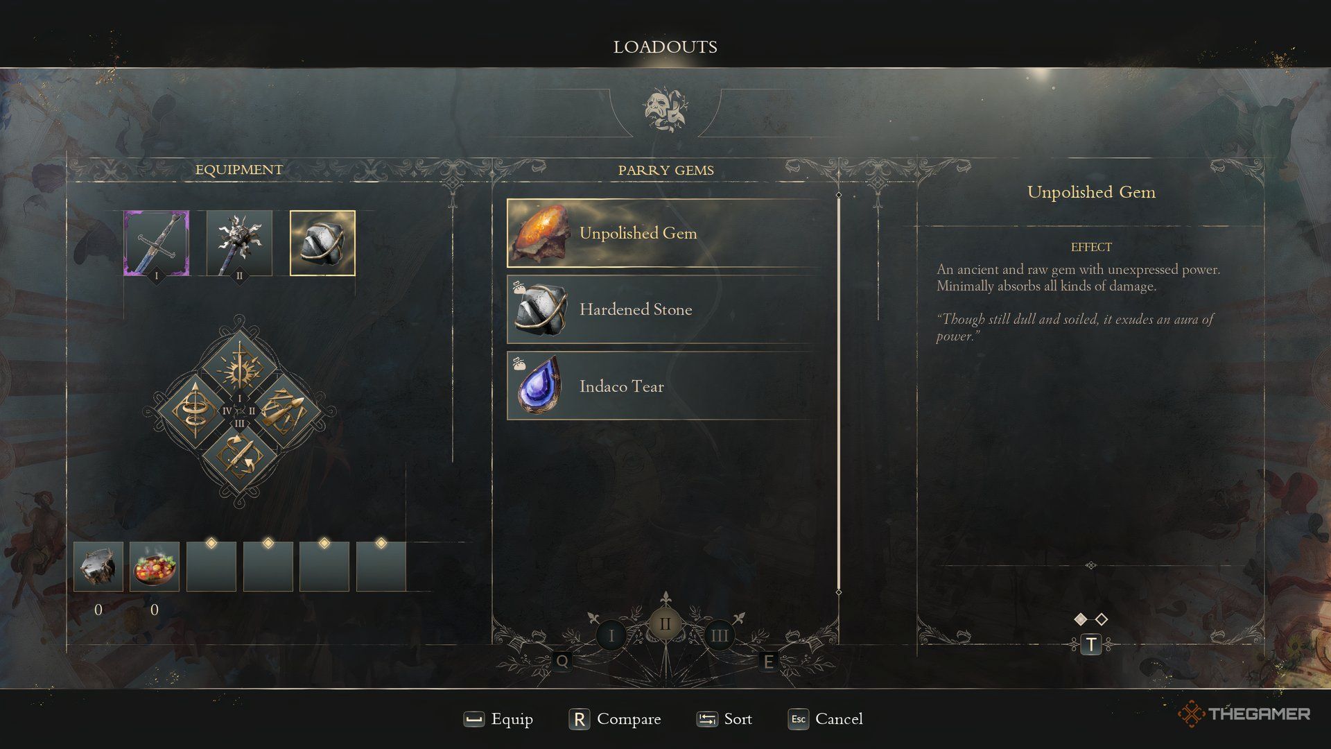 Выбирая снаряжение, убедитесь, что вы включили в него драгоценные камни парирования, которые могут уменьшить получаемый физический или элементальный урон, поскольку разные типы могут оказаться более эффективными против различных боссов, с которыми вы сталкиваетесь.