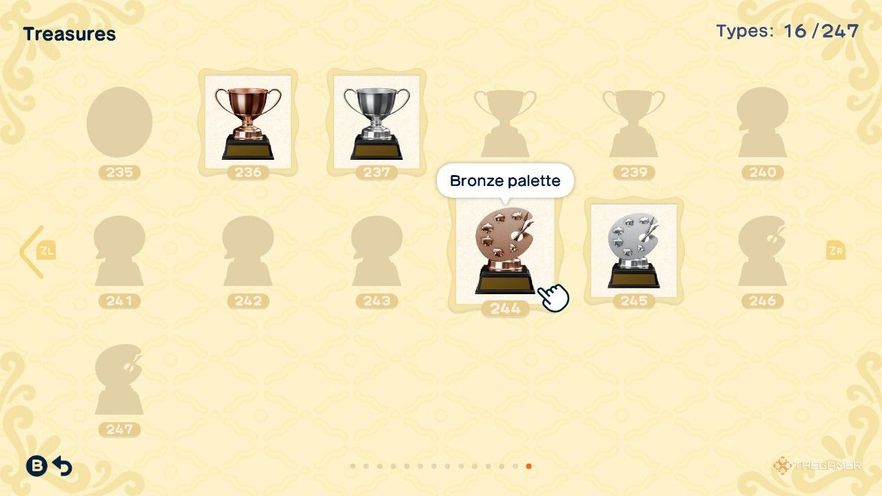 Вы можете отслеживать свой прогресс в достижении трофеев на последней странице вкладки «Сокровища» в Каталоге Предметов, который находится в меню игры. Однако вы также будете получать уведомление, когда достигнете одной из этих вех.