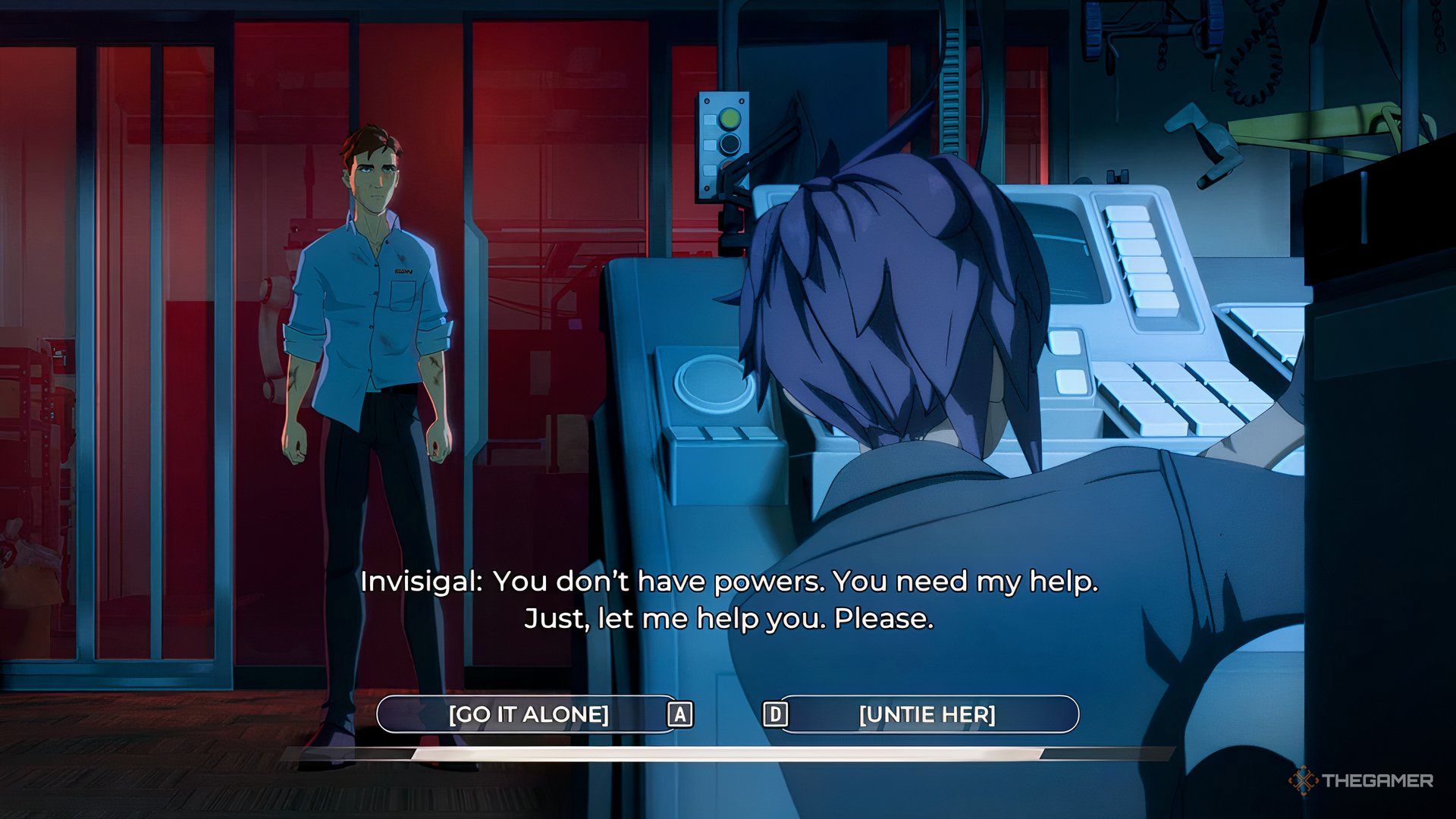 Invisigal ненадежна, и Ройд конкретно просит её сдержать, пока его нет рядом. Ситуация кажется очень подозрительной, особенно если вы последовательно отвергали её попытки установить контакт и не простили её. Если вы попытаетесь справиться с этим самостоятельно, вы столкнетесь с опасным врагом в одиночку, имея при себе только электрошокер, и Invisigal не обязана оказывать какую-либо помощь.